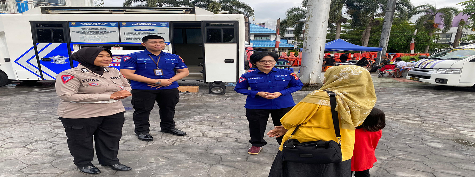 Pelayanan SAMSAT POLRI adalah layanan terpadu antara POLRI, Bapenda, dan Jasa Raharja untuk memudahkan masyarakat dalam pengurusan administrasi kendaraan bermotor, seperti pembayaran pajak, perpanjangan STNK, dan penerbitan TNKB — semua dilakukan dalam satu tempat (satu atap) agar cepat, mudah, dan transparan.